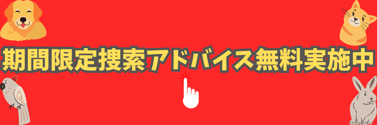 ※捜索アドバイスとは仮に見つからなくても見つかるまで飼い主様に捜索のアドバイスをさせていただきます。